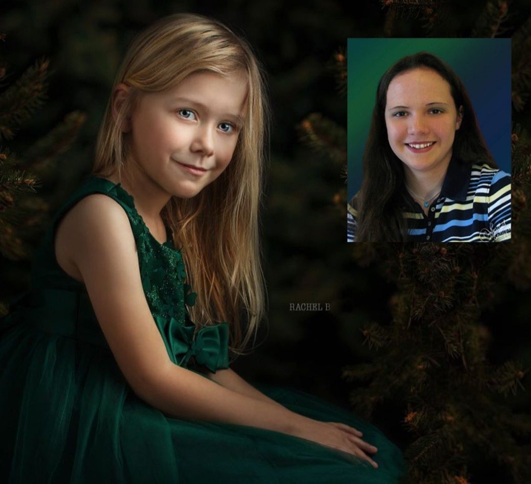 This is one of my favorite photos; using tips from the academy, I shot it in my living room with one light; then in Photoshop, I added a new background Summerana background (the winter collection) and used techniques from the painterly tutorials - the Heirloom Painterly video is my favorite!”. - Rachel B